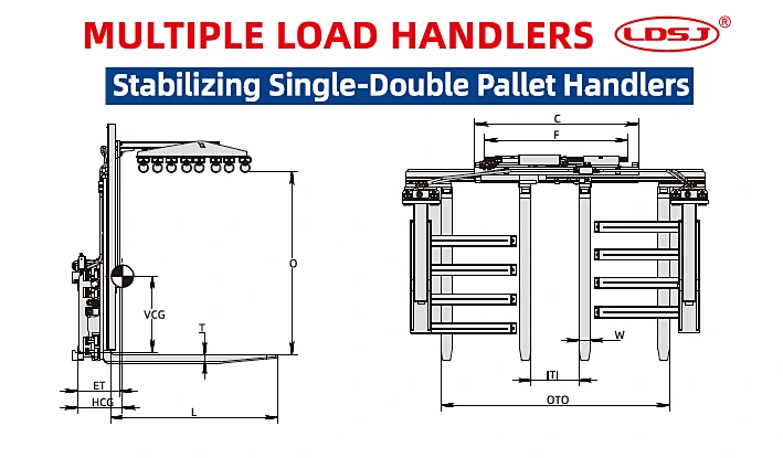 | Наименование | Грузоподъемность, кг | Центр тяжести, кг | Класс монтажа/ каретки | Ширина каретки оборудования С, мм | Диапазон раскрытия ITI, мм | Диапазон раскрытия ОТО, мм | Размер вил BxWxT, мм | Диапазон раскрытия платформы O, мм | Общее смещение (Sideshifting), мм | Межкрюковое расстояние F, мм | Толщина ЕТ, мм | Вертикальный центр тяж. VCG, мм | Горизонтальный центр тяж. HCG, мм | Вес, кг | Грузоподъемность погрузчика, Т |