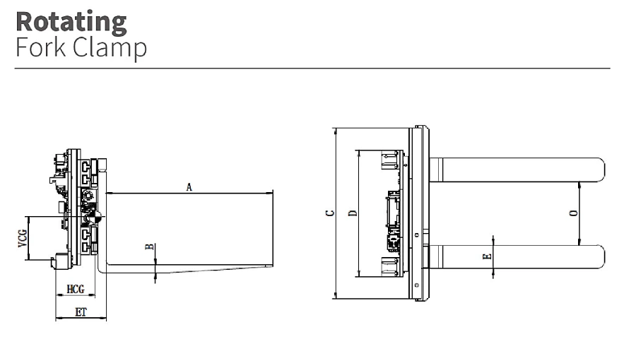 Ширина каретки С, мм | Межкрюковое расстояние D, мм | Вес, кг | Толщина ЕТ, мм | Верт. центр тяж. VCG, мм | Гор. центр тяж. HCG, мм | г/п погрузчика, Т |